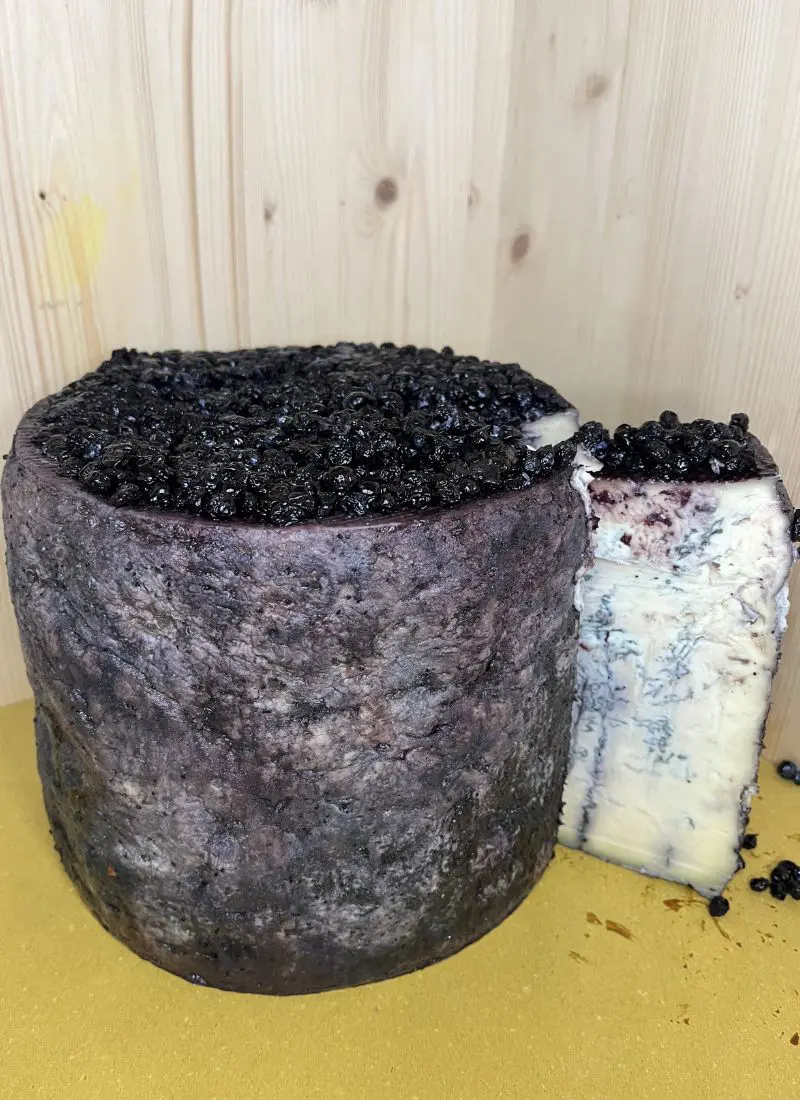 🇮🇹 Un formaggio erborinato di latte di bufala, affinato con miele di castagno e mirtilli sciroppati. La dolcezza del miele e l’acidità dei mirtilli si uniscono alla cremosità del latte di bufala, creando un equilibrio di sapori unico.