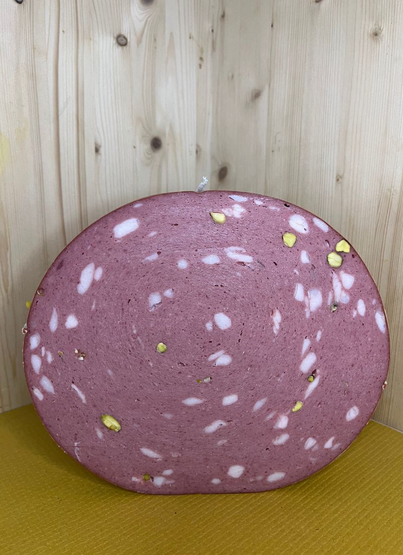 La Mortadella Siciliana d’Asino è un salume artigianale pregiato, espressione autentica della tradizione gastronomica siciliana. Realizzata con carne d’asino finemente macinata, viene arricchita con lardello di suino nero dei Nebrodi e pistacchio, creando un equilibrio unico tra gusto e profumo.